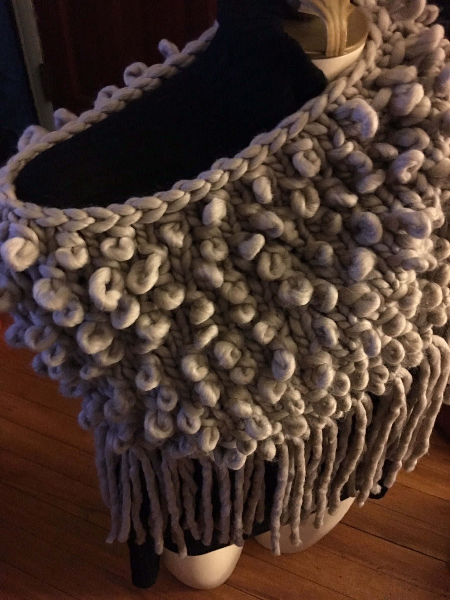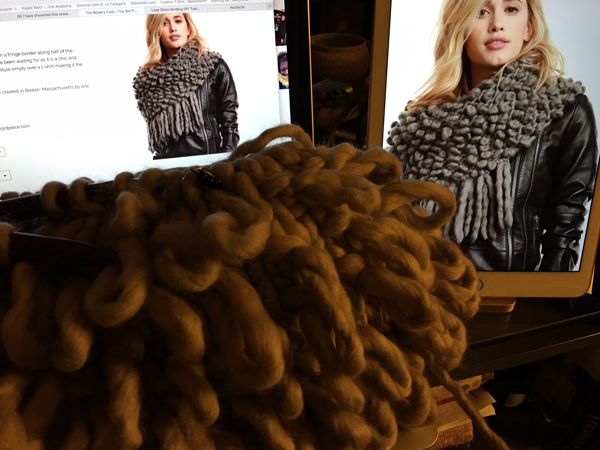I rushed home and the first pattern I tried was the Bowery Cowl, because that thing is hot! I had to look up the loop stitch and I sat down and cast on. I will say this, not only do I have a beautiful traffic stopping cowl, I have learned some new knitting tricks #bonus